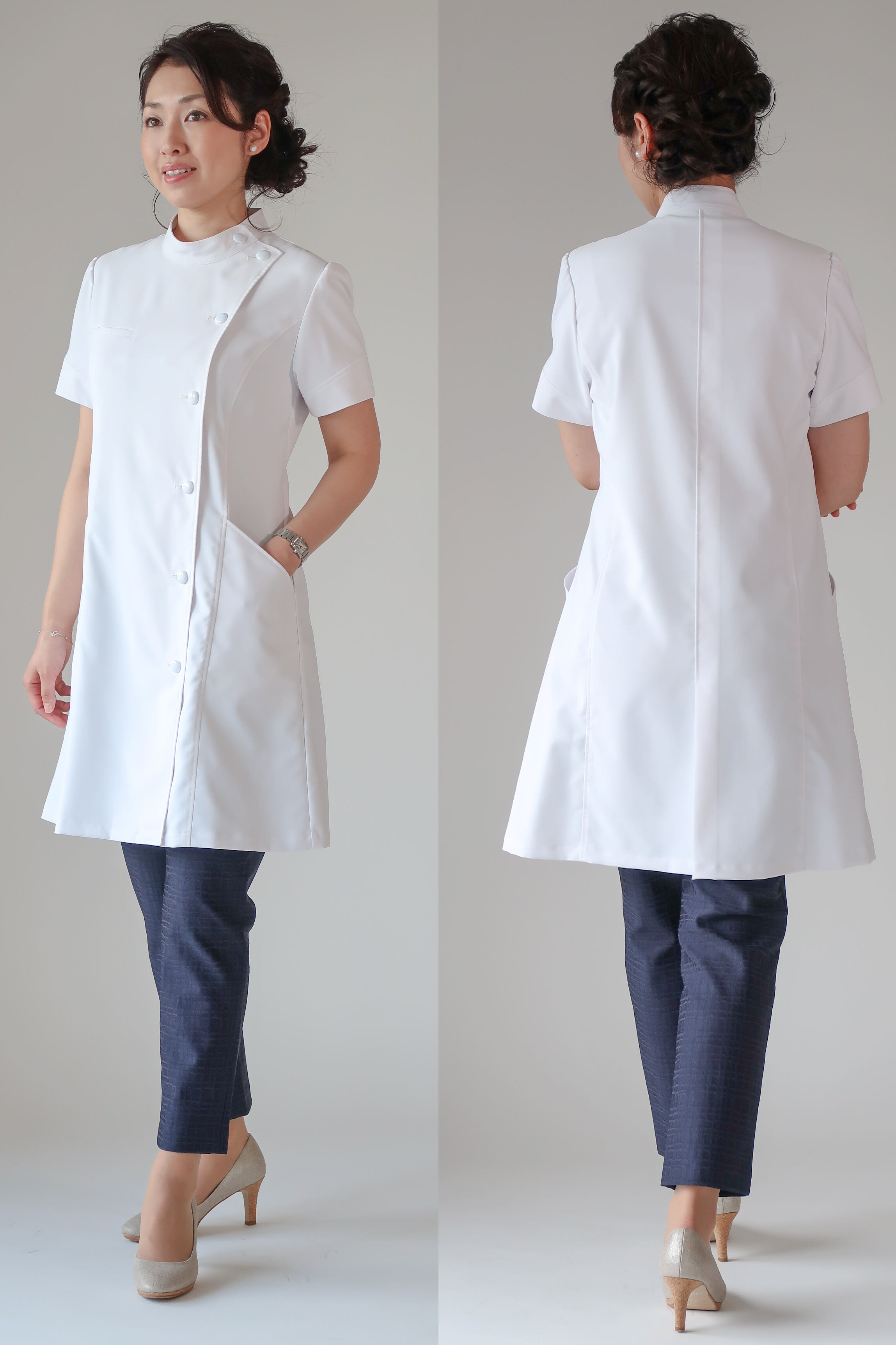 ★ レディース 白衣 : 半袖 ケーシー コート【日本製】