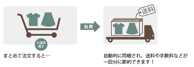 2つ以上の別々のご注文分を合わせて1つにまとめ、発送させていただくシステムです。